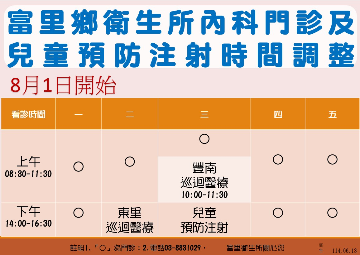若遇醫師外出訪視,將視狀況彈性調整! 看診請先來電確認醫生是否在衛生所 電話: 8831029分機11(總機)