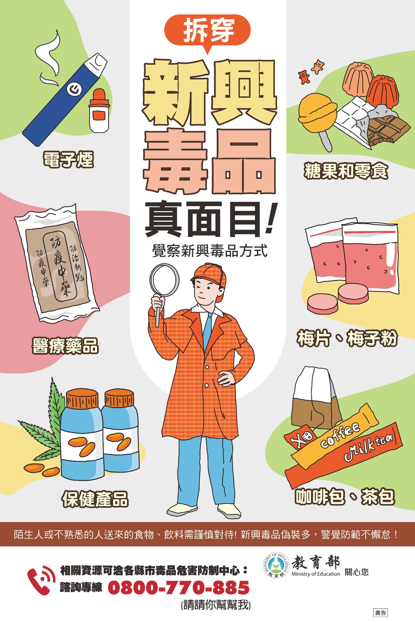 *覺察新興毒品方式:糖果和零食、醫療藥品梅片、梅子粉、保健產品 咖啡包、茶包