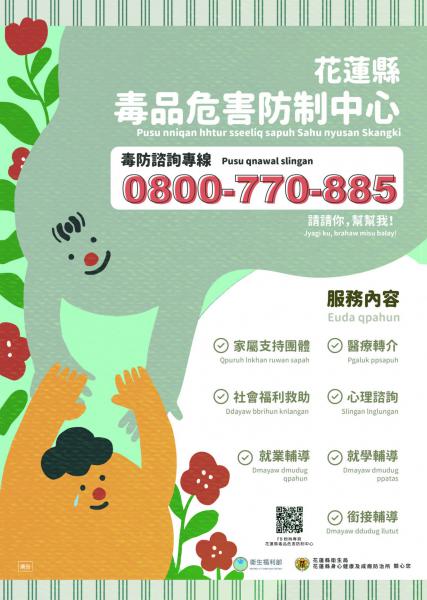 或親自至花蓮縣身心健康及成癮防治所諮詢:花蓮縣花蓮市林森路391號