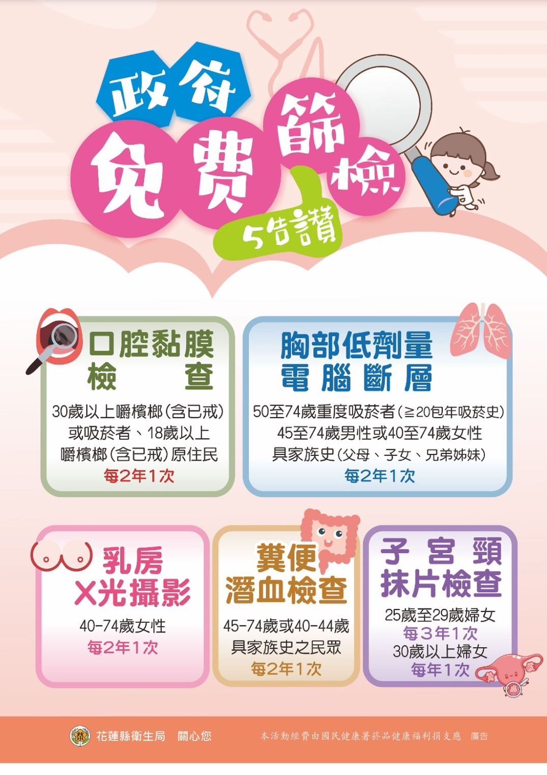 (4) 增列25-29歲女性每3年1次子宮頸抹片檢查,同時每案補助由430元調整為630元。