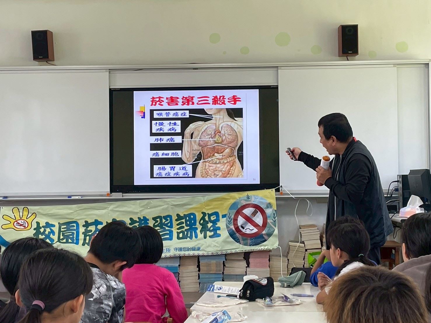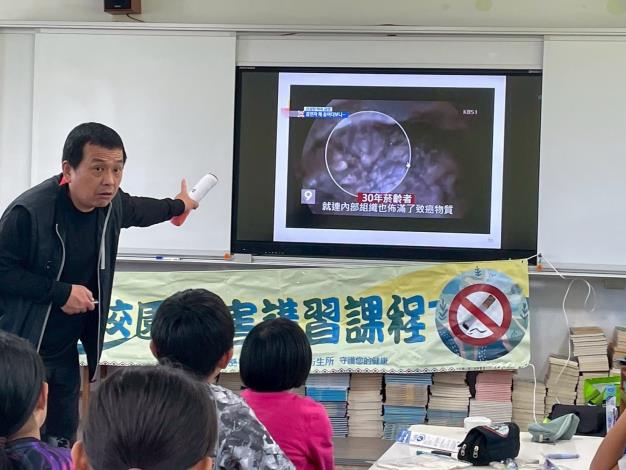 3月26日邀請到花蓮高階戒菸衛教師王錦懋老師,來上第一堂課:菸品及電子煙對青少年成長的影響,課堂中再三強調一手菸二手菸三手菸的危害,教導小孩要遠離菸害環境,柔性勸導家人戒菸
